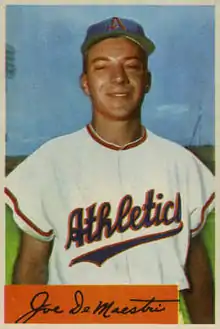 Joseph Paul DeMaestri (December 9, 1928 – August 26, 2016),[1] nicknamed "Froggy", was an American shortstop in Major League Baseball who played for the Chicago White Sox (1951), St. Louis Browns (1952), Philadelphia / Kansas City Athletics (1953–59) and New York Yankees (1960–61). Born in San Francisco, he batted and threw right-handed, stood 6 feet (1.83 m) tall and weighed 170 pounds (77 kg).