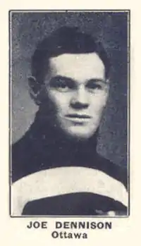 Joseph Charles Dennison (February 2, 1888 – September 21, 1958) was a Canadian professional ice hockey player. Born in Ottawa, Ontario, Dennison played his first professional season of 1908–09 mostly with the Duquesne Athletic Club of the Western Pennsylvania Hockey League. In 1911, he signed with the Ottawa Senators of the National Hockey Association. He appeared in 14 games for the Senators during the span of the 1911–12 and 1912–13 seasons.[1] Later, he worked for the Bell Telephone Company, retiring in 1945 due to his health. He died at his home in Ottawa in 1958 of heart disease.[2]