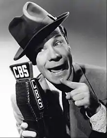 Brown has a place in Boston's sports history. On April 14, 1925, radio station WBZ (AM) broadcast a local Major League baseball game for the first time. The Boston Braves played against the New York Giants, a game that the Braves won 5–4. The radio announcer for that day was Joe E. Brown. Brown was a devoted baseball fan, and some sportswriters who had seen him when he was a semi-pro player still believed he could have become a successful major league player one day.[6] In April 1925, he was in the Boston area, starring in a stage performance of "Betty Lee" at Boston's Majestic Theater.[7] Brown knew several of the Boston sportswriters, especially sports cartoonist Abe Savrann ("SAV") of the Boston Traveler. Brown was a member of the Benevolent and Protective Order of Elks,[8] and so was Savrann, who brought him in as a guest speaker at the mid-April 1925 meeting of the Cambridge, Massachusetts Elks Lodge.[9] Savrann noted in his Traveler cartoon on April 15, 1925 (p. 20) that Brown had been the game announcer that day. And the radio critic for the New Britain (CT) Daily Herald wrote that "It is too bad that Joe E. Brown, who announced the game yesterday, could not fill that place during the entire season," noting that Brown not only described the game well but also offered amusing and interesting anecdotes in the process.[10] While there is no information that he did any further radio play-by-play announcing, he did return to the broadcast booth in television, in 1953. He served as a commentator for the New York Yankees games on WPIX-TV.[11] His TV duties included a 15-minute pre-game show and a 10-minute post-game show throughout the season.[12] At the end of the season, he was replaced by Red Barber.[13]