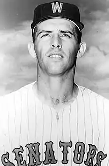 In his MLB debut as a 27-year-old rookie, McClain pitched a complete game, seven-hit victory over the Cleveland Indians at Griffith Stadium on April 14, 1961 — the second regular-season game and the first win in the team's history.[1] He spent the entire 1961 season as a starting pitcher for the Senators, leading the team in games started (29), tying for the lead in innings pitched (212) and shutouts (2), and posted a creditable 3.86 earned run average.[2] His shutouts came on May 14 against the Boston Red Sox (a five-hitter) and July 7 against the Minnesota Twins (a three-hitter against the former Senator franchise). He registered seven complete games that season.