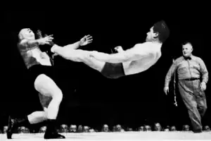 Jumping Joe Savoldi executing a dropkick at Madison Square Garden (1934)
