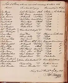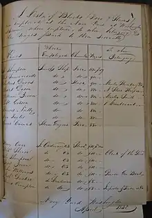 April 1829 list of enslaved and free blacks with diarist Michael Shiner and successful litigant Joe Thompson of Thompson v Clarke