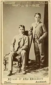 Initially, 20 players were selected for the side, named the "New Zealand Māori team".[41] Some of these players had strong family and playing links to Warbrick (such as his four brothers).[42] Warbrick was eventually compelled to add five Pākehā (European non-Māori) players to the squad, which resulted in the side being renamed the "New Zealand Native football team".[43][lower-alpha 6] Warbrick may have wanted a team of exclusively Māori or part-Māori players, but according to historian Greg Ryan, including the Pākehā players was "necessary to strengthen the Native team and create a more effective combination". A further player, Pie Wynyard, was added to the side after they arrived in Britain in November 1888.[45][lower-alpha 7]