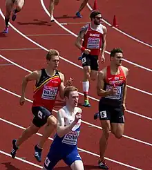 ![]() Joel Burgunder (no. 4) during the 2016 European Athletics Championships – Men's 400 metres | |