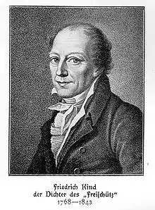 Johann Friedrich Kind (4 March 1768, in Leipzig – 24 June 1843 in Dresden) was a German dramatist, most famous for writing the libretto for Carl Maria von Weber's opera Der Freischütz (1821).