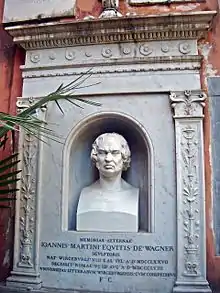 From 1831 von Wagner lived in the Villa Malta in Rome. In 1841, the King appointed him Central Gallery Director of the Munich Pinakothek, but Wagner immediately asked for his resignation from this post as he did not want to leave Rome. In 1857 Martin von Wagner was made an honorary citizen of Würzburg for his services to art and science. In December of the same year, he donated his entire art collection to the University of Würzburg.[6] Since 1963, the university collection exhibited in the Würzburg Residenz has therefore been named after Wagner – the Martin von Wagner Museum.
