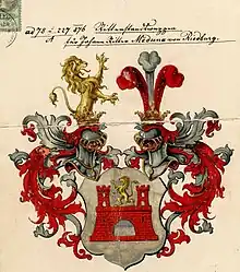 1. 1 2 "AT-OeStA/AVA Adel HAA AR 589.11 (Adelstands-Diplom, Ad. Num. 22.716/1606 1861)". Österreichisches Staatsarchiv (in German). Archived from the original on 2023-12-12.