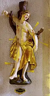 Between 1738 and 1741, he created figures of the Twelve Apostles and St. Paul for the high altar in the new parish church at St. Margarethe Monastery.[3] Later, the altar was remodeled to reflect the popular Rococo style, but his figures were left intact. They are among the few sculptures he created in stucco, rather than wood.[4]