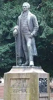 The Lörracher Pädagogium was renamed the Hebel-Gymnasium in 1926.[33] Several Gymnasien in Pforzheim and Schwetzingen were named after him. Basic schools, in Essen, Berlin and especially Südbaden bear his name, as do numerous German streets. Monuments to Hebel are found in the Karlsruhe Palace, in Basel, Hausen and in the Hebelpark Lörrach. The Hebelbund Lörrach, Müllheim and the Basler Hebelstiftung are dedicated to his life and work.