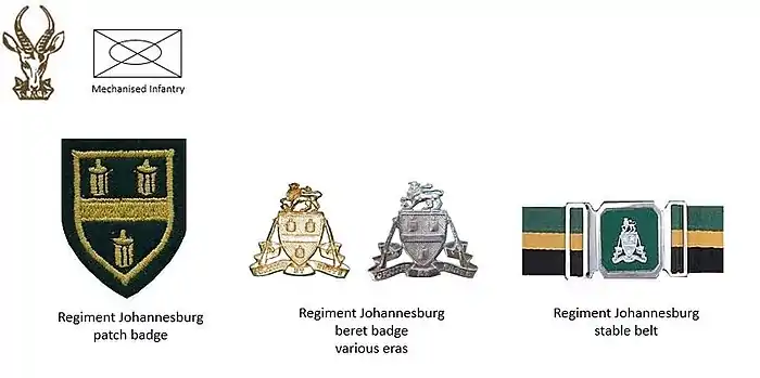 The Johannesburg Regiment[1] is an infantry regiment of the South African Army. As a reserve unit, it has a status roughly equivalent to that of a British Army Reserve or United States Army National Guard unit.