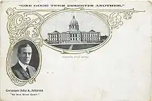 John Albert Johnson (July 28, 1861 – September 21, 1909) was an American politician. He served in the Minnesota State Senate from January 1897 to January 1901. He was the 16th governor of Minnesota from January 4, 1905, until his death on September 21, 1909. He was a Democrat.