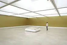 Armleder frequently examines the context in which art is displayed and views the exhibition as a medium in its own right. Since the 1990s, he has created installations, paintings, wall paintings, sculptures and what he calls Furniture Sculptures—installations that usually juxtapose furniture with monochrome or abstract paintings, either literally on the furniture or a canvas hanging nearby.[7] His work has varied greatly in form, and has, since the beginning, used chance as a method of producing the final forms that pieces take, much like John Cage. He often uses a dense scenographic hanging style, putting individual works into proximity and creating installation-like exhibitions.[8]