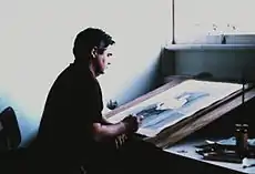 John Brack working on the portrait of J.R. McLeod circa 1971