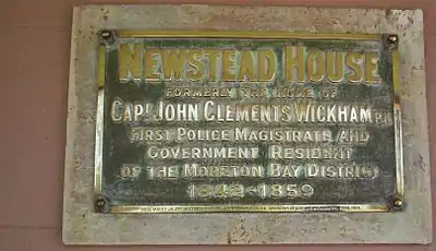 - 1 2 3 4 Austin, C. G. (1947). "Newstead House and Capt. Wickham, R.N." Journal of the Royal Historical Society of Queensland. 3 (6): 459–465. ISSN 1837-8366 – via University of Queensland.