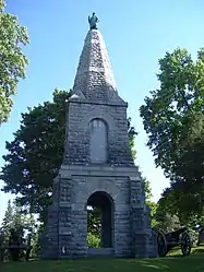 Barrow also painted portraits of prominent citizens in the Skaneateles area.[3] He presented some of his paintings to Syracuse public libraries.[4][14]: 303 [15] He designed the Skaneateles Soldiers' and Sailors' Monument (1895) at Lake View Cemetery. He also designed the addition to the village's public library that houses his art gallery.[2]