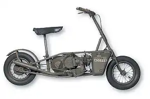 Dolphin was a keen motorcyclist (he owned a 1000cc Ariel Square Four), and with design help from Harry Lester, a former racing bike engineer, they developed a prototype of a small folding motorbike that could be dropped in a parachute container and be used by paratroopers. Codenamed the "Welbike", this was to be the first operational transport for individual parachutists.[10] The Welbike was the smallest motorcycle ever used by the British Armed Forces.[12] Between 1942 and 1945, 3853 were built, and although it was not much used by the SOE, many were issued to the Parachute Regiment and used at Arnhem during Operation Market Garden.[13]