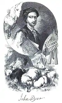 John Dyer (1699 – 15 December 1757) was a painter and Welsh poet who became a priest in the Church of England.[1] He was most recognised for Grongar Hill, one of six early poems featured in a 1726 miscellany. Longer works published later include the less successful genre poems, The Ruins of Rome (1740) and The Fleece (1757). His work has always been more anthologised than published in separate editions, but his talent was later recognised by William Wordsworth among others.