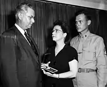 On June 18, 1953, Hospitalman Kilmer's mother, Lois Kilmer, was presented with her son's Medal of Honor by Secretary of the Navy Robert Bernard Anderson.[3][1]