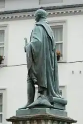 Thomas studied in London under Francis Leggatt Chantrey and then in Europe. He produced church monuments in Wales from 1831, and portraits in London from 1834 onwards, becoming a frequent exhibitor of his portrait busts at the Royal Academy between 1835 and 1862. At his London studio at 7 Lower Belgrave Place he retained the patronage of Welsh landed gentry, producing bust portraits for them.[4] Many of his public works are still visible in Wales: for example his Duke of Wellington in the centre of Brecon, and his statuary in Brecon Cathedral. He also produced a lot of work outside Wales.[3] Over the years his name has suffered confusion with that of John Thomas (1813–1862) to the extent that the English sculptor's 1855 Boadicea was transported as one of John Evan Thomas' works from Birmingham to Brecknock Museum in 1981, and suffered damage en route and after arrival, before it was realised that the sculptor was the other John Thomas.[5][6] Works at the Guildhall and Lloyds Bank at Bristol are probably those of John Thomas but are attributed to John Evan Thomas.[7][8]