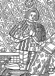 John Fogge married secondly, by 1458, Alice Haute or Hawte (born c.1444), the daughter of William Haute, Esquire, MP (d.1462[25]) of Bishopsbourne, Kent,[26] and Joan Woodville, daughter of Richard Woodville.[27][28] Richard Woodville was also the father of Richard Woodville, 1st Earl Rivers, and the grandfather of Elizabeth Woodville,[28][1] [29] and Fogge's second wife, Alice Haute was thus Elizabeth Woodville's first cousin. After her marriage to Edward IV, Elizabeth Woodville brought her favourite female relatives to court. Fogge's second wife, Alice Haute, was one of her five ladies-in-waiting during the 1460s.[30]