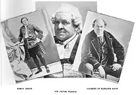 John Gibbs Gilbert was born in Boston on February 27, 1810, the son of John Neal and Elizabeth Gilbert (née Atkins).[1] He made his first appearance there at the Tremont Theatre, in 1828, as Jaffier in Otway's Venice Preserved. His original aim was to be a tragedian, but while on a tour through the South and West, the success of his Sir Anthony Absolute, Master Walter, etc., convinced him that his true bent was for "old men" parts, and he soon became the leading American actor in that line of comedy. In 1834, he again came forward at the Tremont Theatre, Acting Mr. Dornton in The Road to Ruin. The occasion was that of a benefit to George Barrett a favorite comedian of that epoch. The Tremont was managed then by Thomas Barry, who died on February 11, 1876, full of years and honors. Gilbert remained at the Tremont Theatre five years. The versatility of his talents and the variety of his efforts at that time are denoted by the list of parts which he acted during the first season with Barry. This includes Master Walter, Isaac of York, Sir Peter Teazle, Pizarro, Iago, Sir Edward Mortimer, Admiral Kingston, Lieutenant Worthington, Sir Robert Bramble, Polonius, Uncle John, Tom Noddy, Macduff, Mr. Dornton, Squeers, King Henry the Sixth, Adam, Malec, Kent and Rolanio.