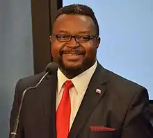 Godson Chikama Onyekwere was born in Nigeria to an Igbo family from Umuahia, Abia State. He moved to Poland in 1993, and in 2001 became a Polish citizen. In 2008, he became a member of the Łódź City Council. In 2007, he unsuccessfully ran in the Polish parliamentary election. In 2010, he was re-elected for the City Council with 4736 votes, the second best result out of almost 800 candidates. As former MP Hanna Zdanowska was elected Mayor of Łódź in the same election, Godson replaced her as a member of the Sejm. He was sworn in on 14 December 2010. The "Obama bump" is considered by many the reason for the many votes he received during the Sejm campaign.[1] His supporters were known to cheer "Wiwat! Wiwat polski Obama!" ("Long live the Polish Obama!").[2] John Godson was re-elected as a member of the Polish parliament on 9 October 2011 with 29,832 votes [3]