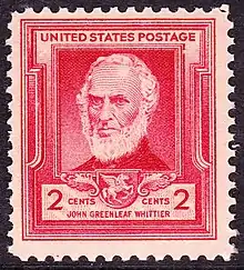 John Greenleaf Whittier (December 17, 1807 – September 7, 1892) was an American Quaker poet and advocate of the abolition of slavery in the United States. Frequently listed as one of the fireside poets, he was influenced by the Scottish poet Robert Burns. Whittier is remembered particularly for his anti-slavery writings, as well as his 1866 book Snow-Bound.