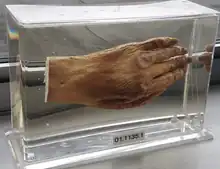 Hall-Edwards's interest in X-rays cost him his left arm. A cancer (then called X-ray dermatitis) was sufficiently advanced by 1904 to cause him to write papers and give public addresses on the dangers of X-rays and only then were protective measures begun. He lost his personal battle and his left arm had to be amputated at the elbow in 1908[5], and four fingers on his right arm soon thereafter, leaving only a thumb. His left hand is at the Birmingham University Museum as a specimen to demonstrate the effects of radiation.