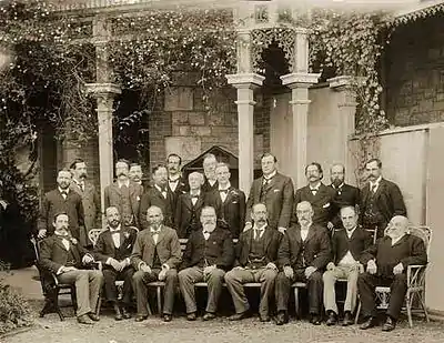 ![]() 1897 – At his home 'Streldon' (sic) in North Adelaide with "The more important members of the 'Register' staff". (Finlayson: front row, fourth from left.) |