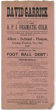 Auburn finished the 1897 football season $700 in debt, and in response, Heisman took on the role of a theater producer and staged the comedic play David Garrick.[60]