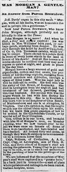 13. "John Hunt Morgan". Chattanooga Republican. 1892-12-24. p. 1. Retrieved 2023-07-06.