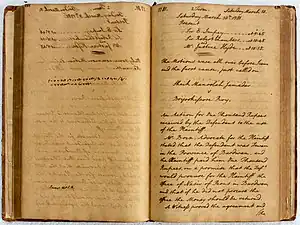 Hyde's notebook entry, March 8, 1782. Hyde used James Weston's shorthand.