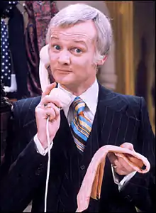 Inman made his television debut in 1965 in the sitcom A Slight Case Of... titled The Enemy Within. In 1966, he appeared in two episodes of the BBC sitcom Hugh and I. In 1970, he acted in one episode of the ITV sitcom Two in Clover. In 1972, he was asked by David Croft to play a part in a Comedy Playhouse pilot called Are You Being Served?.[2] This was a sitcom set in a department store, written by Croft with Jeremy Lloyd, and based on the latter's experiences working at Simpsons of Piccadilly.[3] Playing a minor role with only a few lines, he was soon asked to "camp it up",[3][4] despite initial reluctance from the BBC to include such a camp character. The pilot was broadcast in September 1972. The broadcast was followed by the five episodes of the first series in early 1973. The first series was scheduled opposite Coronation Street on ITV and attracted little attention, though repeats later that year proved very successful.[3]