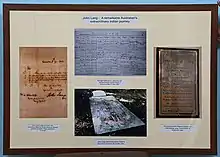 Lang became a journalist and in 1845 established a paper, the Mofussilite, at Meerut. He also wrote some novels which appeared serially in the Mofussilite and in Fraser's Magazine. These began to be published in book form in 1853, The Wetherbys and Too Clever by Half both 1853, followed by Too Much Alike (1854), The Forger's Wife (1855, said to be the first English-language detective novel),[2] Captain Macdonald (1856), Will He Marry Her (1858), The Ex-Wife (1858), My Friend's Wife (1859), The Secret Police (1859),[3] and Botany Bay; or True Stories of the Early Days of Australia (1859). Some of these were very popular and were often reprinted, the twelfth edition of Too Clever by Half appearing in 1878. Botany Bay has been reprinted several times, sometimes under the titles of Clever Criminals, or Remarkable Convicts. Fisher's Ghost reprints 10 of the 13 stories of Botany Bay. Lang also published Geraldine, A Ballad in 1854, and in 1859 Wanderings in India and other Sketches reprinted from Household Words. Lang visited London in 1859, and was for a short time at Calcutta where he issued the Optimist. Lang died in the hill station of Mussoorie, India, and is buried in Camel's Back Cemetery, which enjoys a wide vista of the Lower Western Himalaya, which Lang loved greatly. His grave had been lost for almost a century until it was sought out and discovered by the writer Ruskin Bond.[4]