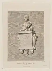 Lee died from cancer on 5 August 1793, having suffered from ill health and played little part in politics at the end of his life.[9] He was buried at Staindrop Church, County Durham.[1] The monument there, by Joseph Nollekens, was paid for by Earl Fitzwilliam.[10] A bust of Lee by Nollekens had already appeared in The Rockingham Mausoleum.[11]