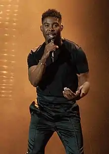 He participated in Melodifestivalen 2019 with the song "Too Late for Love", where he advanced directly to the final.[16] The song reached number one on the Sverigetopplistan singles chart in March 2019. It eventually won Melodifestivalen, represented Sweden at the Eurovision Song Contest 2019 in Tel Aviv, Israel in the second semi-final.[17][18] The song qualified for the final and finished fifth overall with 334 points.[19][20]