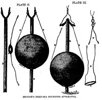 Brooke graduated in 1847[1] from one of the earliest classes of the United States Naval Academy[2] and became a lieutenant in the United States Navy in 1855. He worked for many years with Commander Matthew Fontaine Maury at the United States Naval Observatory (USNO), charting the stars as well as assisting in taking soundings of the ocean's bottom to determine the shape of the sea floor. Many believed the sea floor was flat, but all previous soundings as deep as eleven miles (18 km) could not find the ocean bottom. Part of this was due to powerful undercurrents far below, rivers in the ocean traveling in various directions. In the struggles with soundings, which nobody had done anything of value at great depths, it was Maury's failure with a unique device he invented that gave Brooke an idea of taking deep sea soundings. Brooke perfected a "deep-sea sounding device" which was used afterwards by navies of the world until modern times and modern equipment replaced it. At Maury's direction, Brooke also added a "core-sampling device" for taking samples of the material of the sea floor.
