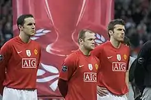 Throughout the 2008–09 season, O'Shea became a regular within the team, deputising at right-back because of injuries to Gary Neville and Wes Brown. On 20 January 2009, O'Shea scored his first goal of the season against Derby County in the second leg of the League Cup semi-final.[15] O'Shea then started the 2009 Football League Cup Final, before being replaced by Nemanja Vidić on 76 minutes, United won the game 4–1 on penalties.[16] On 29 April 2009, O'Shea scored the only goal of the game in the first leg of the Champions League semi-final against Arsenal, this set United up to go on and win in the second leg by 4–1 on aggregate.[17] O'Shea started and played the full 90 minutes in the 2009 Champions League Final 2–0 loss to Barcelona, and by many accounts was one of United's better performers on the night.[18][19][20] Sir Alex Ferguson had promised O'Shea, who was an unused substitute in the 2008 Champions League Final, a starting place in the 2009 final for his contribution to the team that season.[21]