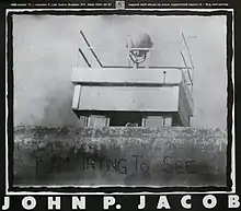 Jacob's efforts during this period include the irregular mail-art magazine PostHype (1981–85), and the International Portfolio of Artists' Photography (1983–86), an assembling book project conceived to integrate mail-art, book-art, and photography. Increasingly interested in issues related to censorship, and working with artists in the Soviet Bloc countries of Eastern Europe,[3][4][5] the final issue of PostHype (4.1) documented a mail- and phone-art project entitled East/West: Mail Art & Censorship.[6] In 1987, in a self-proclaimed withdrawal from mail-art, Jacob published The Coffee Table Book of Mail Art: The Intimate Letters of J.P. Jacob.[7] With an advertisement declaring "Each copy contains a valuable original artwork by a famous mailartist!!" Jacob gave away original works to recipients of the publication until his collection was exhausted. Jacob continued to exhibit as a photographer through the 1980s, presenting his last one-person exhibition, entitled I'm Trying to See, at the Liget Galeria, Budapest, in 1988.[8] He occasionally exhibited under the pseudonym Janos Jaczkó after that.[9]