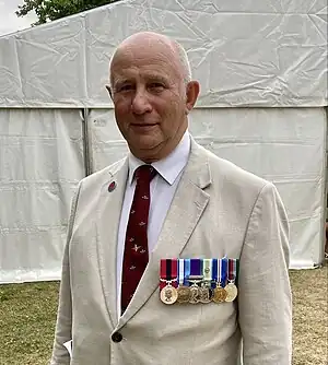 Captain John Stuart Pettinger DCM (born 1953) is a former officer of the Parachute Regiment in the British Army and a veteran of the Falklands War during which he was awarded the Distinguished Conduct Medal (DCM) for bravery.[1] This was a field award for other ranks of the British Army and was the oldest British award for gallantry, at that time ranking second only to the Victoria Cross. His DCM was one of only eight awarded during the conflict,[2] five of which were awarded to the Parachute Regiment.[3] Pettinger was invested with his Distinguished Conduct Medal by Queen Elizabeth II at Buckingham Palace in 1982.[4]