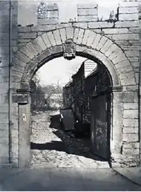 Friary Gate (alias Sparke's Gate), Exeter Street, Plymouth. Photograph c.1890 showing "Sparke's Gate", an early 18th century rebuild of the dilapidated 13th century entrance to the Whitefriars Abbey, which had been acquired as their residence by the Sparke family after the Dissolution of the Monasteries
