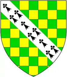 Arms of Sparke: Chequy or and vert, a bend ermine[1]