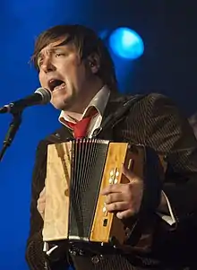 ![]() John Spiers performing with Bellowhead in 2011 | |