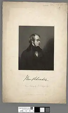 Born at his father's house, Putney Hill Villa, on 7 May 1810, he was the younger son of Mary[1] and William Leader, a London merchant, and Whig Member of Parliament for Camelford and then Winchelsea. He entered Charterhouse School in 1823, but left shortly to study with a private tutor, the Rev. Patrick Smyth, and visited Ireland, Norway, and France. The accidental death at Oxford of his older brother William in February 1826 made him heir to most of his father's large fortune, which he inherited on his father's death on 13 January 1828.[2]