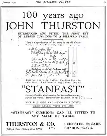 - ↑ "Company Histories: Thurston & Co". SnookerHeritage.co.uk. Retrieved 27 December 2018.