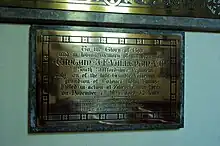 For conspicuous bravery on 7th November at Zillebeke. When leading the attack against the Germans under a very heavy fire he was struck down, and on rising to continue the attack was immediately killed. The capture of the enemy's trenches which followed was in a great measure due to the confidence which the men had in their Captain, arising from his many previous acts of great bravery and ability.[3][4]