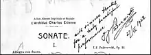 and the front page of Paderewski's Sonata in E flat minor Op. 23, with the composer's dedication to Adela Verne: