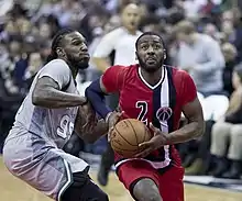 Johnathan Hildred Wall Jr. (born September 6, 1990)[1] is an American professional basketball player who last played for the Los Angeles Clippers of the National Basketball Association (NBA). A Raleigh, North Carolina native, Wall was chosen with the first overall pick of the 2010 NBA draft by the Washington Wizards after playing one year of college basketball for the Kentucky Wildcats. Wall, who plays the point guard position, was a five-time NBA All-Star from 2014 to 2018 and was named to the All-NBA Team in 2017. However, he experienced multiple injuries in 2019 and missed more than two years of basketball before being traded to the Houston Rockets in December 2020. After two seasons with the Rockets he joined the Clippers via free agency in the 2022 off-season before being dealt back to the Rockets with whom he reached a buyout in February 2023.