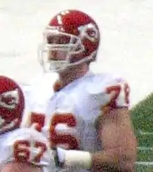 John Welbourn was traded to the Kansas City Chiefs for a 2004 fifth round and 2005 third round draft picks. He went on to start at right tackle for the Chiefs for the 2004, 2005 and 2006 seasons. In 2005 he was suspended for four games for violation of the NFL's substance abuse policy,[2][3] and in 2006 he received a six-week suspension for a second violation.[4] In 2007 he started all 16 games for the Chiefs at right guard. He was released at the end of the season with one year left on his contract.[5]