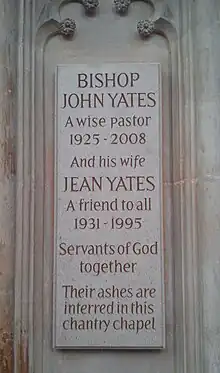 - 1 2 3 Eyre, Richard (14 March 2008). "Obituary— John Yates—Cleric with bold views on homosexuality". The Guardian. p. 42. Retrieved 14 March 2008.